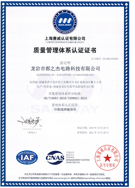 自1997年成立以來,都之杰已經(jīng)獲得ROHS產(chǎn)品認證,各項技術指標達到國家先進水平,質(zhì)量和信譽是企業(yè)的生命,我們一直以來持續(xù)不斷改善產(chǎn)品的質(zhì)量,以質(zhì)量取勝市場,提高公司的信譽度。多年來憑優(yōu)良的產(chǎn)品質(zhì)量、準時快捷的供貨和周到細致的服務,深得國內(nèi)外客戶的好評。我們已經(jīng)獲得良好的聲譽和客戶的信任,并逐漸成為客戶可信賴的、能長期合作的印刷線路板戰(zhàn)略合作供應商。我們堅持向國內(nèi)外先進企業(yè)學習并不斷提升自主創(chuàng)新。公司擁有經(jīng)驗豐富及穩(wěn)定的團隊,視質(zhì)量為企業(yè)生命,嚴格推行ISO9001質(zhì)量管理體系,符合ROHS標準,并獲得了UL安全認證、TS16949和CQC認證。