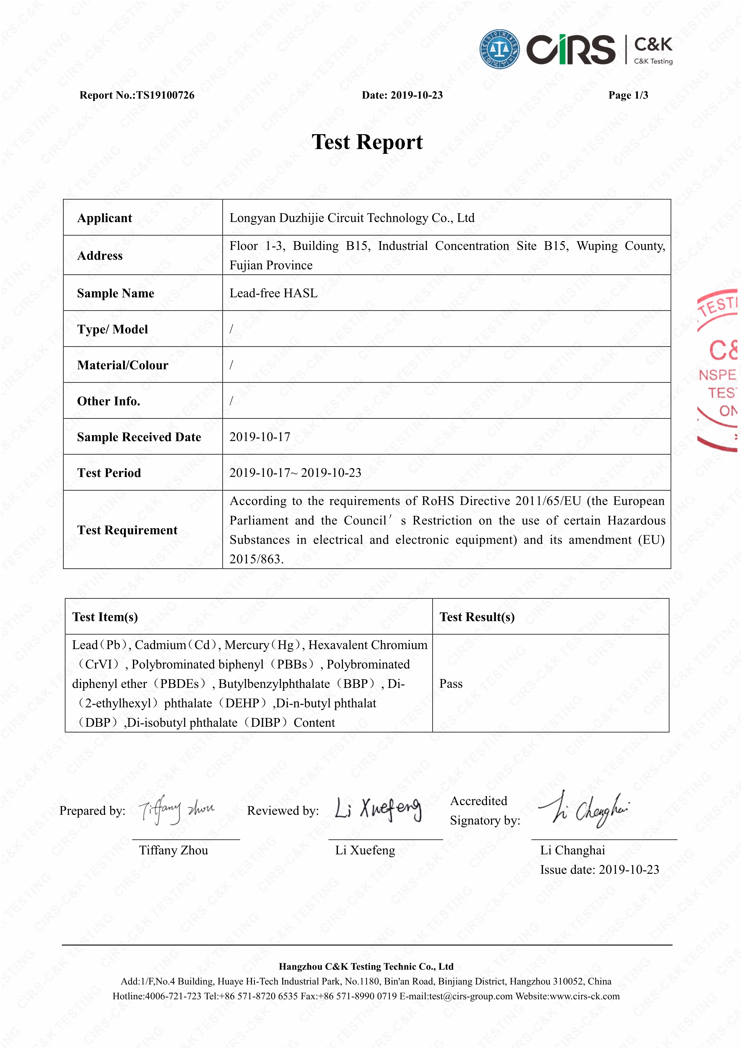 工廠搭建了ISO-9001、T/S16949、ISO14001的管理體系并通過認證,產(chǎn)品符合CQC、UL、IPC、RoHS等